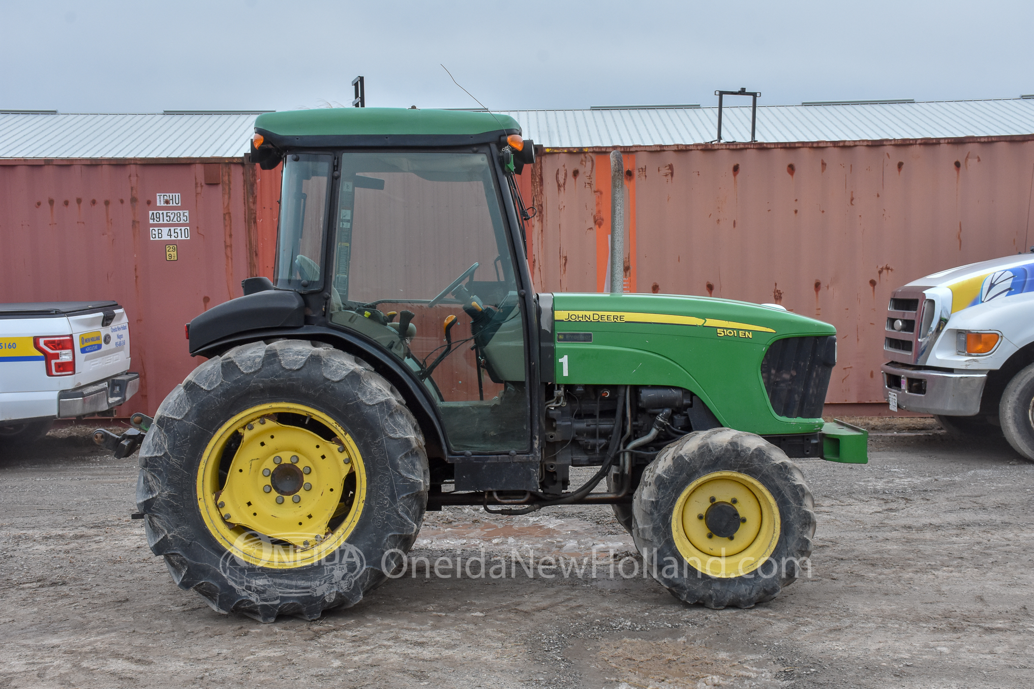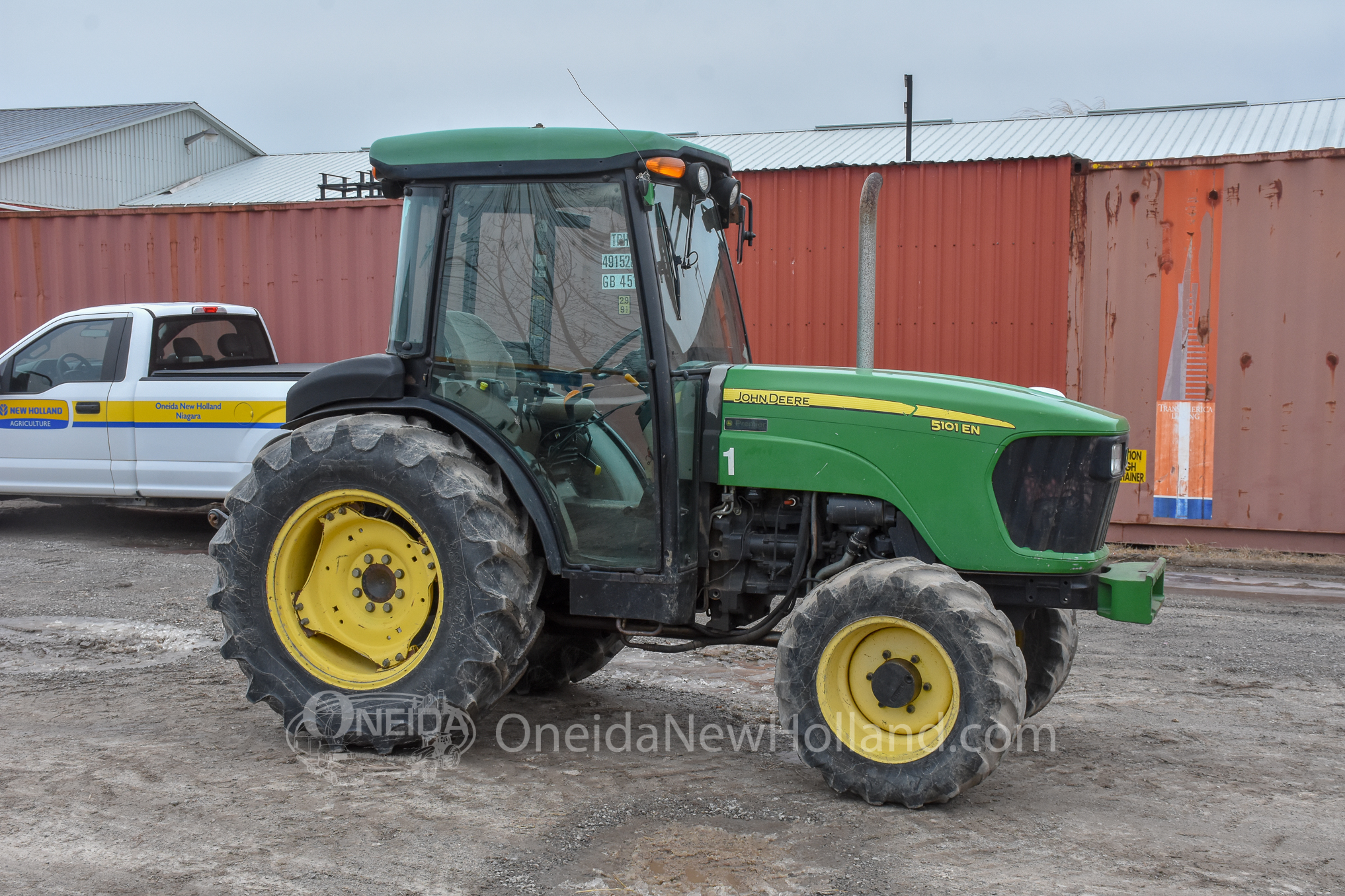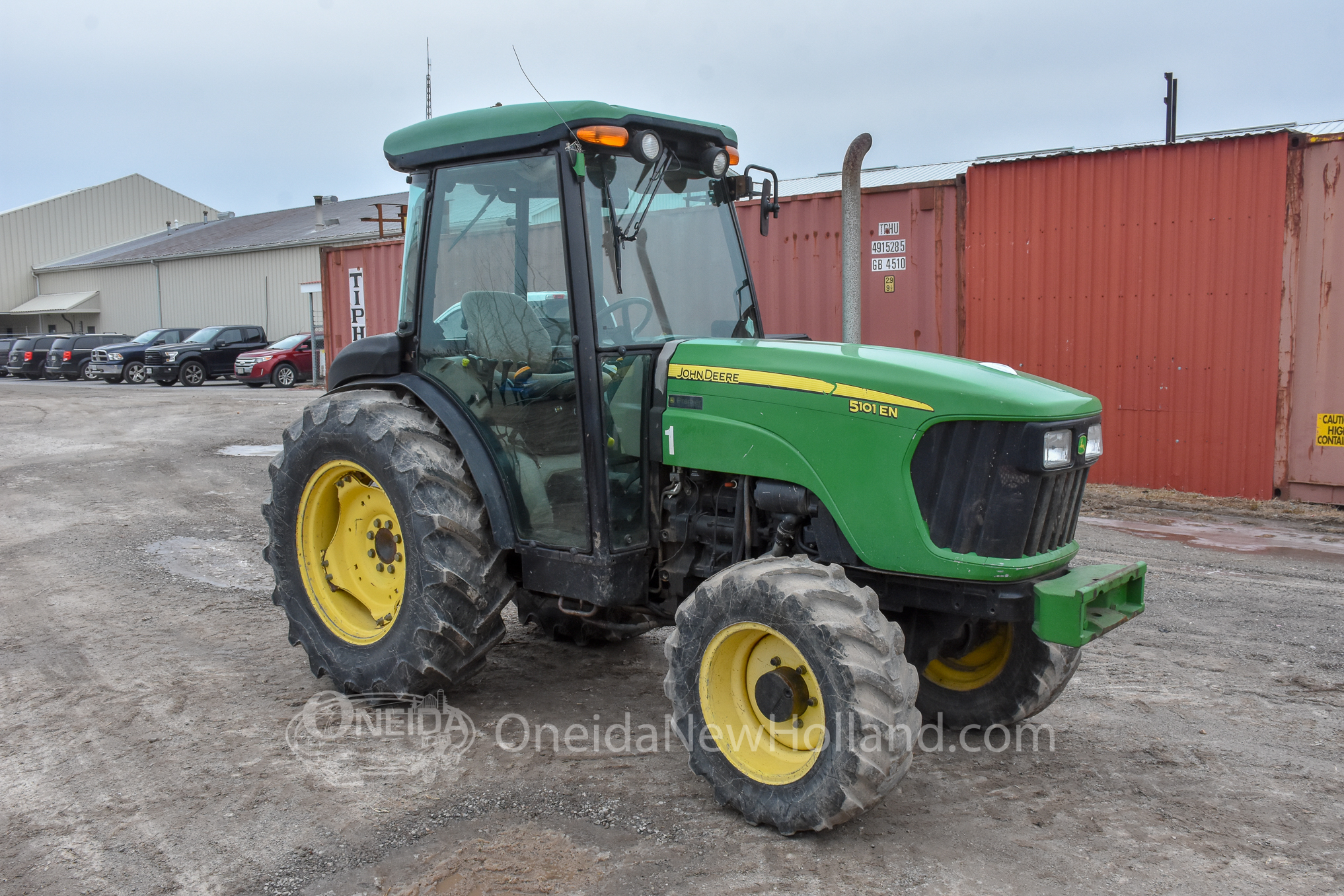 The John Deere 5101EN is a narrow-profile specialty tractor designed for operations requiring higher horsepower in confined row spacing. This unit delivers 101 hp rated engine power with 86 hp rated PTO power, providing strong output for PTO-driven applications. Equipped with a 12F/12R PowrReverser™ transmission, it offers clutch-less forward and reverse changes for efficient directional control. As part of John Deere’s Narrow Series lineup, the 5101EN combines compact dimensions with substantial capability. The tractor shows 13,575 hours.