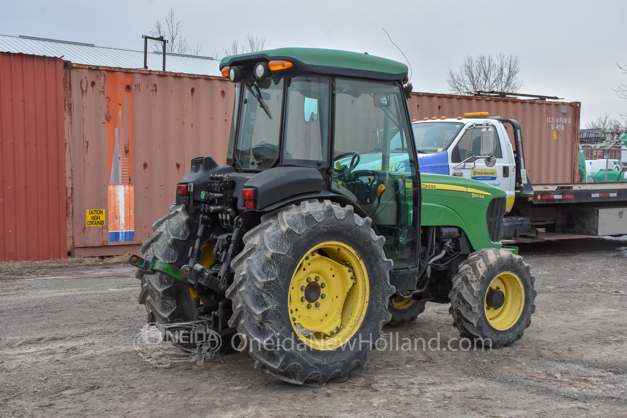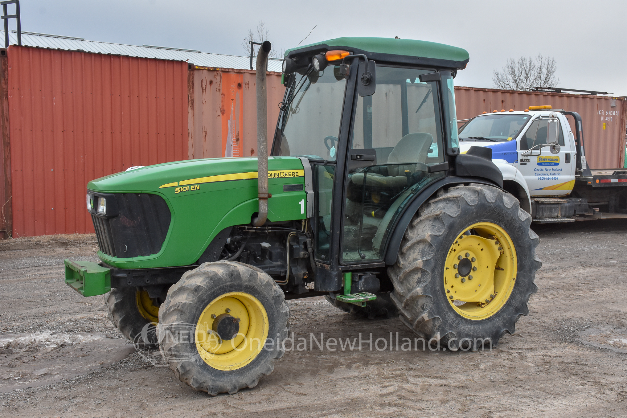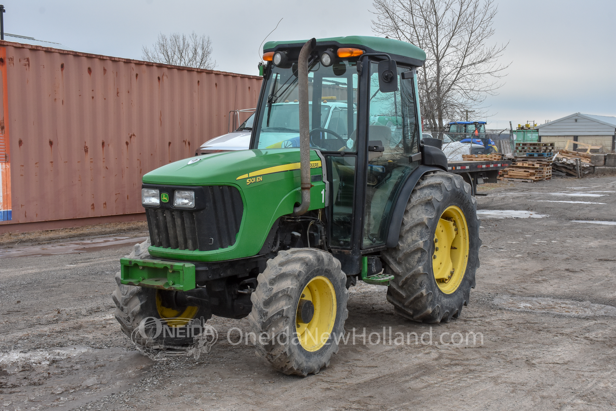 The John Deere 5101EN is a narrow-profile specialty tractor designed for operations requiring higher horsepower in confined row spacing. This unit delivers 101 hp rated engine power with 86 hp rated PTO power, providing strong output for PTO-driven applications. Equipped with a 12F/12R PowrReverser™ transmission, it offers clutch-less forward and reverse changes for efficient directional control. As part of John Deere’s Narrow Series lineup, the 5101EN combines compact dimensions with substantial capability. The tractor shows 13,575 hours.
