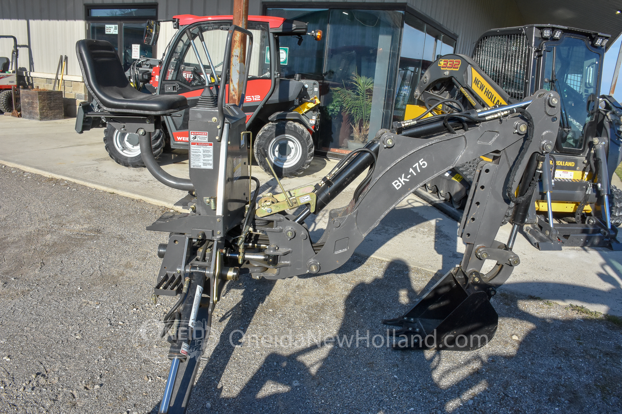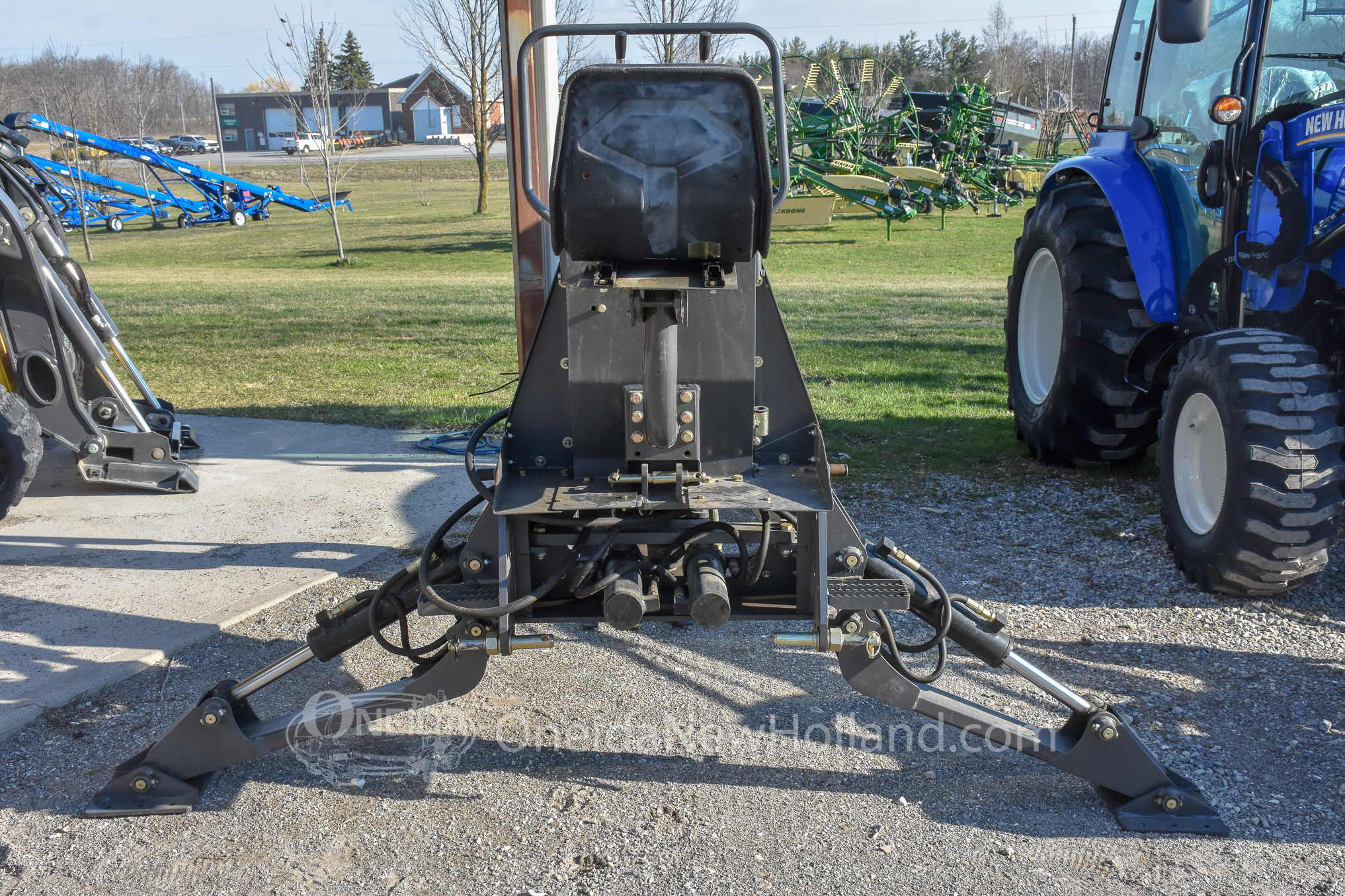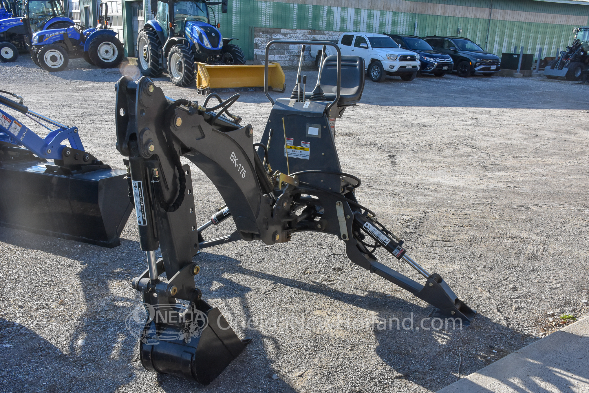 This used 2019 Braber BK175 3-Point Backhoe is a versatile and highly capable attachment, delivering robust excavation power with a 76″ maximum digging depth and 180 degree rotation. It is designed to mount securely via a standard three-point hitch. This unit is As-New and has seen little use. For trenching and utility work, the unit is outfitted with a 12 inch digging bucket with bolt on teeth and heavy-duty adjustable stabilizer legs. The backhoe operates using 1 rear hydraulic remote pair. Operator convenience is a priority, provided by an elevated, comfortable operator seat and responsive multi-function joystick controls that offer precise operation. Additionally, the implement features durable steel construction and easily accessible grease points to accommodate a variety of demanding landscaping and agricultural environments. This dependable backhoe attachment is identified by Stock Number AT1017 and Serial Number 182474-BK175-Y19.