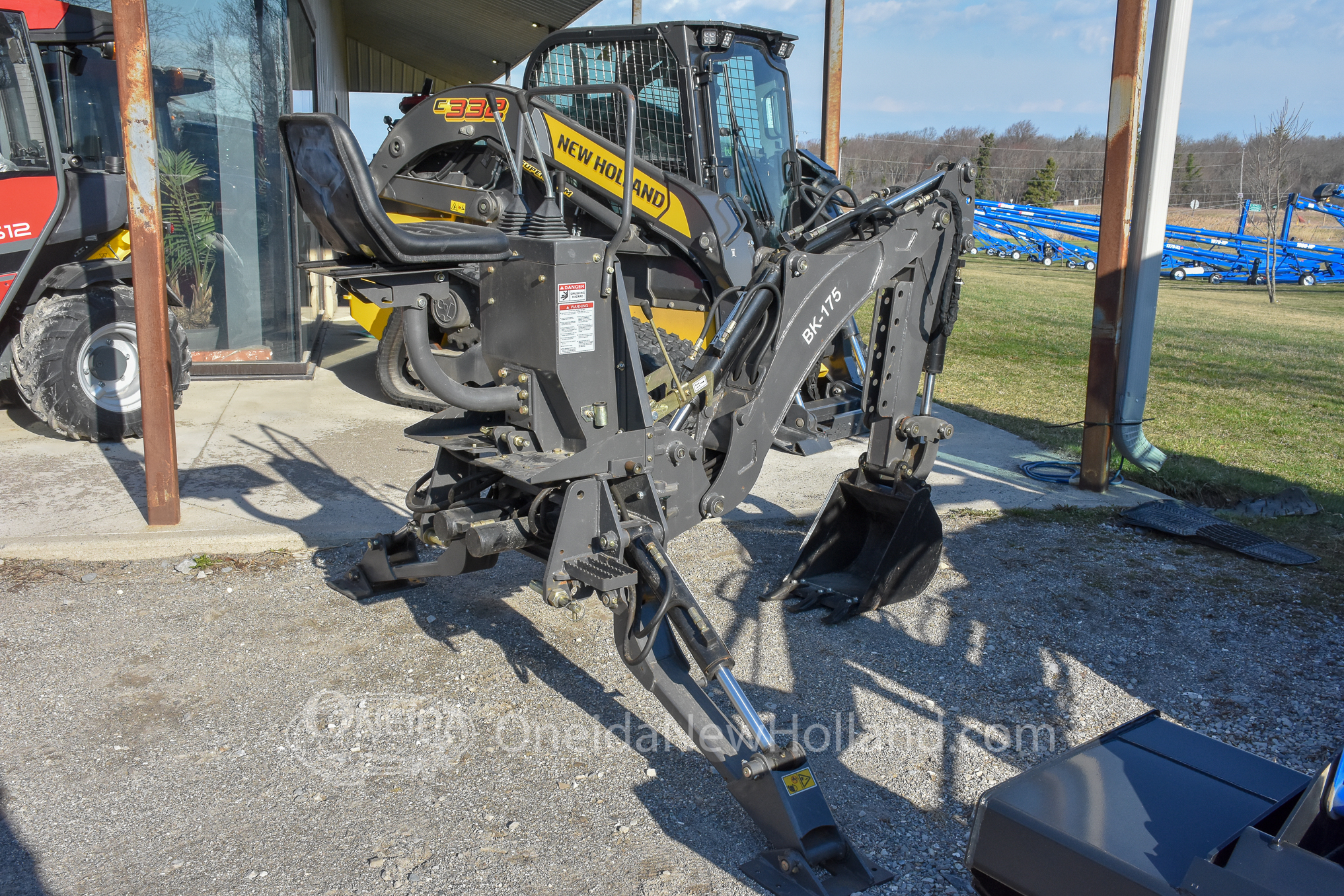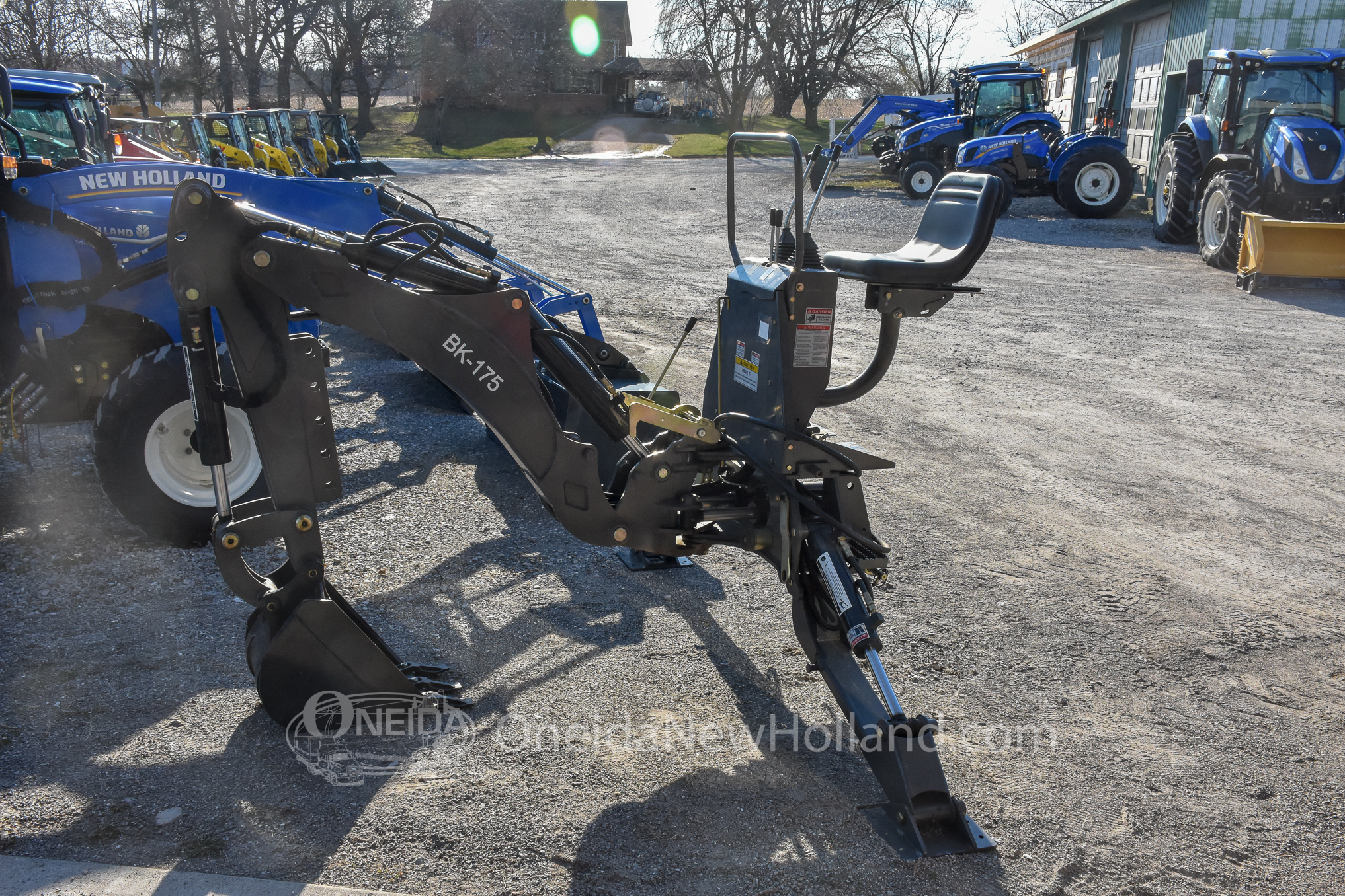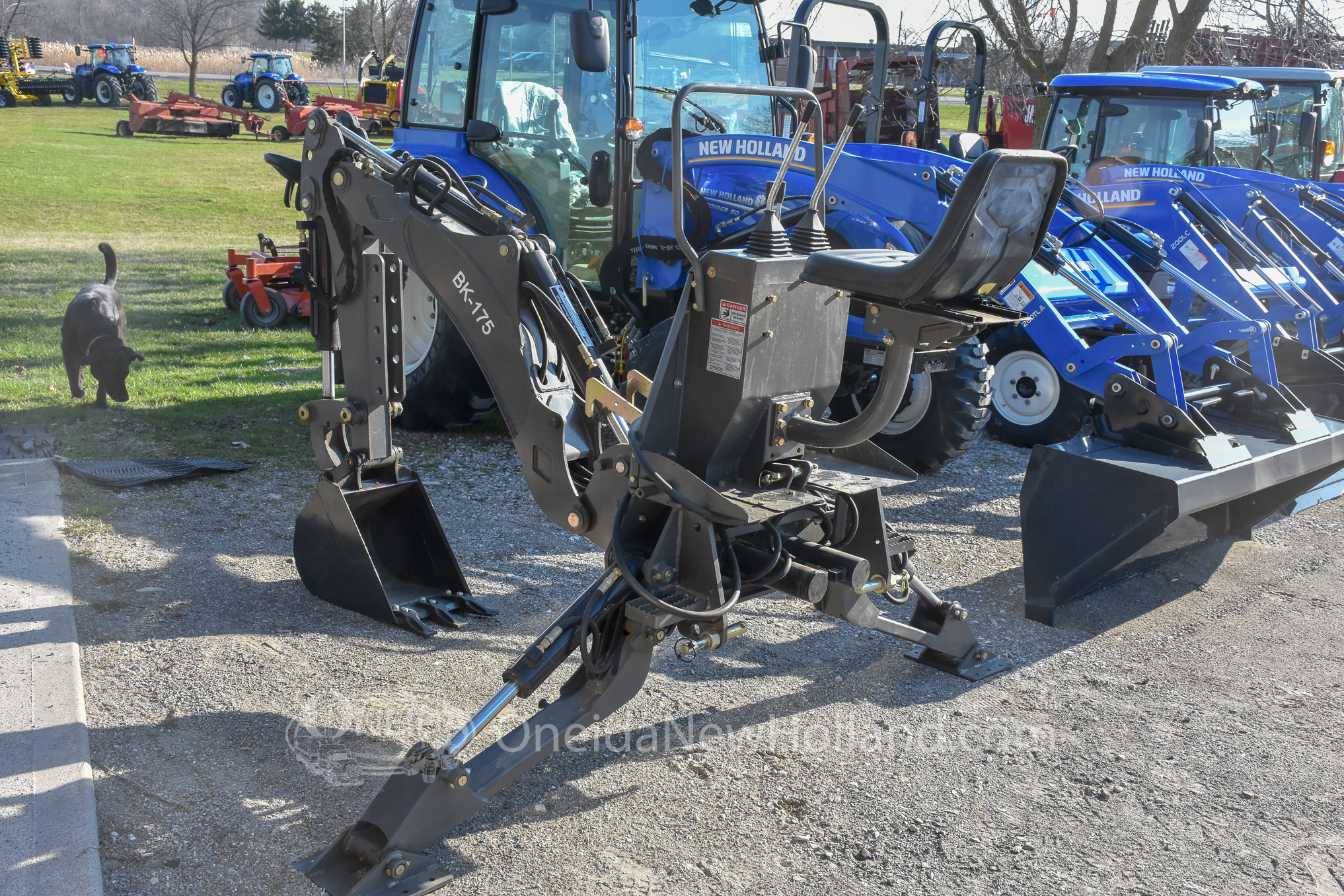 This used 2019 Braber BK175 3-Point Backhoe is a versatile and highly capable attachment, delivering robust excavation power with a 76″ maximum digging depth and 180 degree rotation. It is designed to mount securely via a standard three-point hitch. This unit is As-New and has seen little use. For trenching and utility work, the unit is outfitted with a 12 inch digging bucket with bolt on teeth and heavy-duty adjustable stabilizer legs. The backhoe operates using 1 rear hydraulic remote pair. Operator convenience is a priority, provided by an elevated, comfortable operator seat and responsive multi-function joystick controls that offer precise operation. Additionally, the implement features durable steel construction and easily accessible grease points to accommodate a variety of demanding landscaping and agricultural environments. This dependable backhoe attachment is identified by Stock Number AT1017 and Serial Number 182474-BK175-Y19.