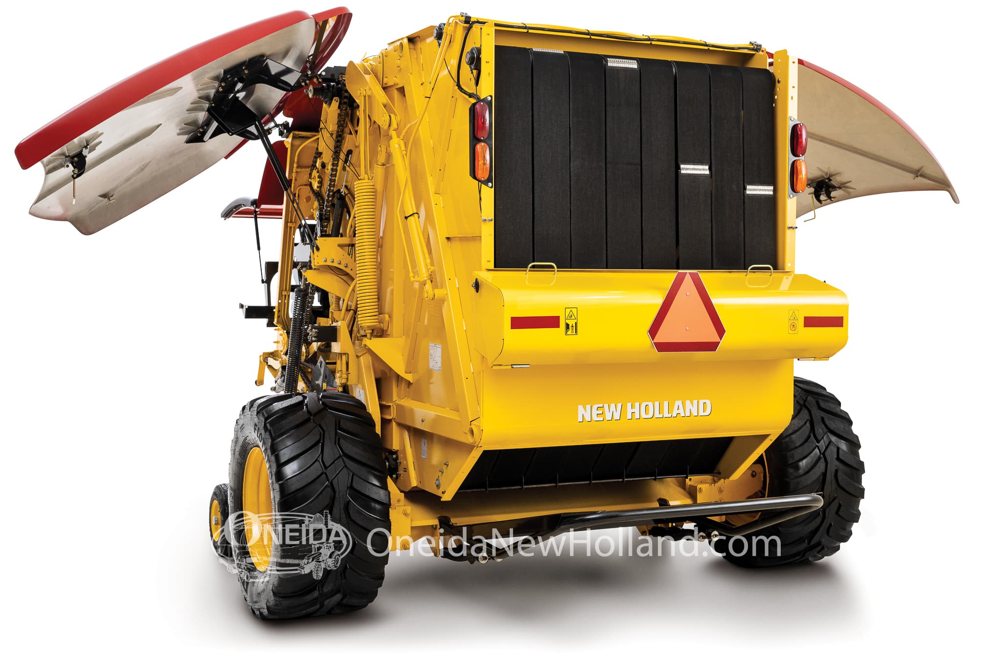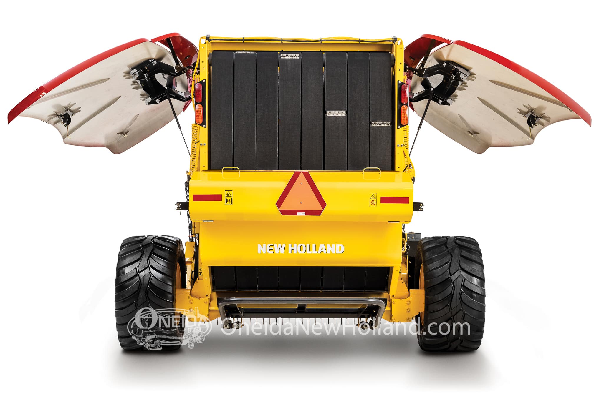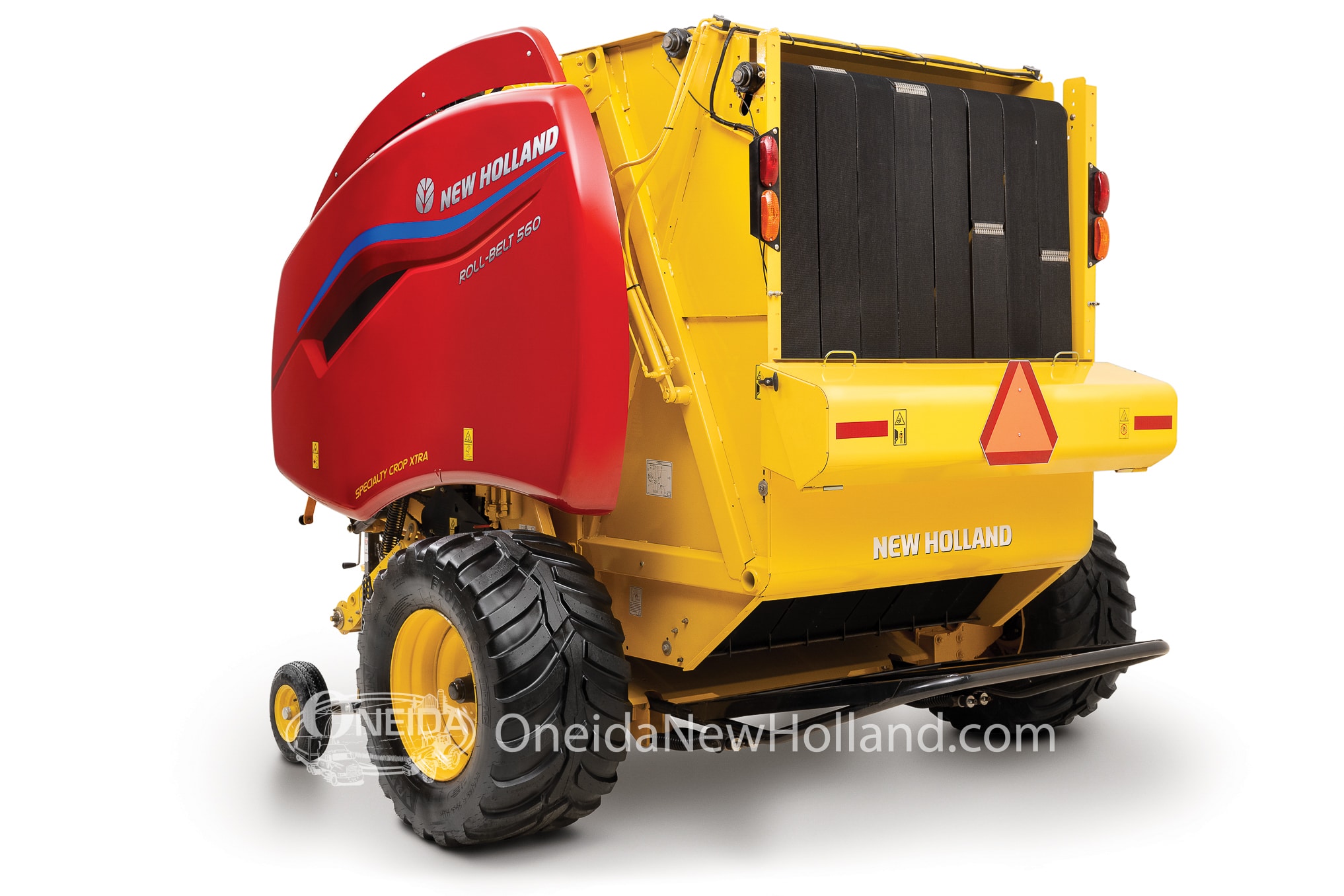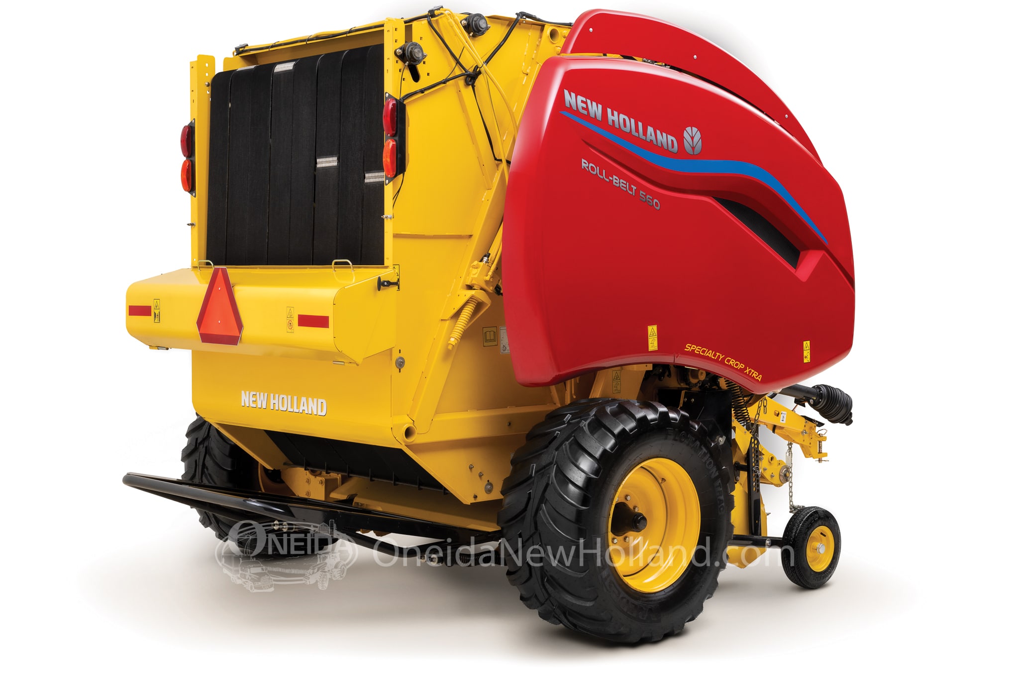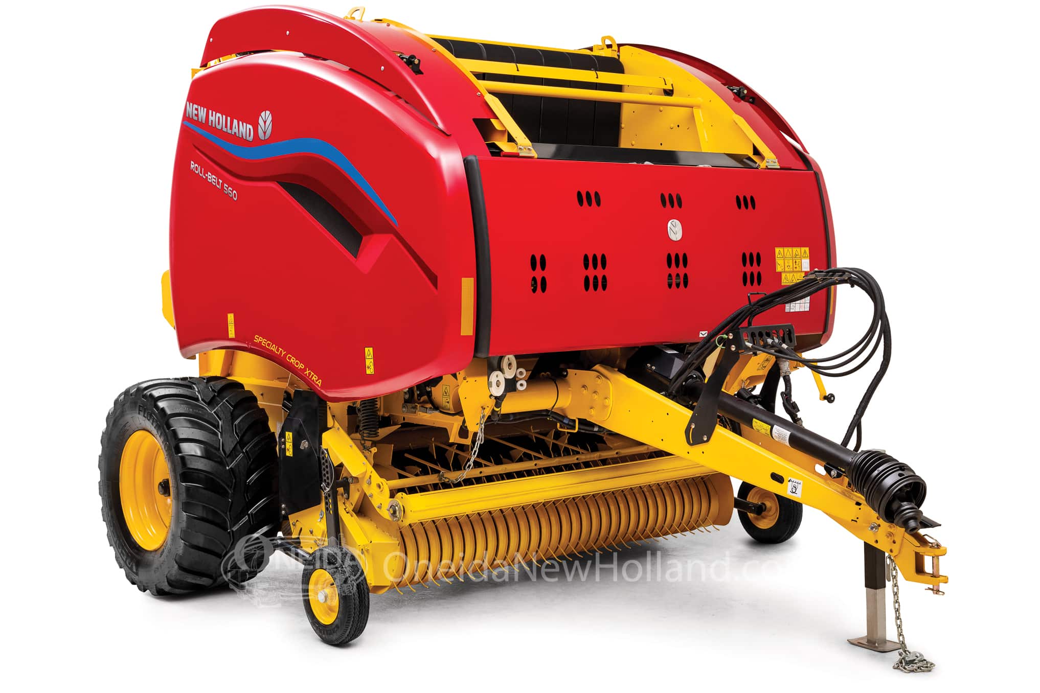 This New Holland ROLL-BELT 450 Silage Special, from the Round Baler category, is built to bale without compromise in high-moisture conditions. This new model features rugged performance and legendary durability as standard, equipped with a 1.8M Heavy Duty 5-Bar Pickup, Premium Endless Belts, and a 1.8M Roller windguard for efficient crop handling. The baler utilizes the EdgeWrapâ„¢ Net & Twine Wrapping system and is powered by a 540 RPM Constant Velocity Driveline with a cam-style, cut-out clutch for added protection.