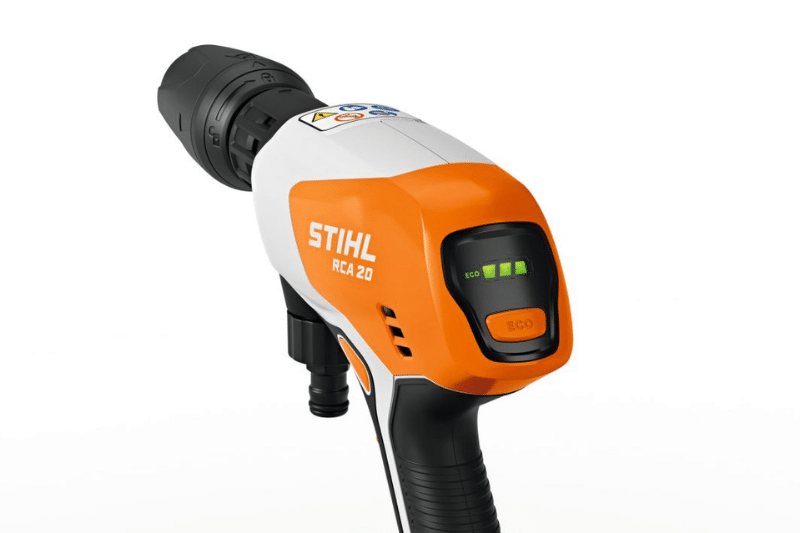 The New STIHL RCA 20 PRESSURE WASHER (Model RCA 20) is a versatile and powerful battery-powered pressure washer within the Pressure Washers category, specifically designed for a wide range of cleaning tasks around the home and garden. Part of the compact STIHL AS System, it features a low-maintenance and highly efficient EC engine with a rated voltage of 10.8 V. This exceptionally lightweight and compact unit is designed for maximum mobility, allowing you to clean garden furniture, bicycles, steps, and pathways without the need for a power or water connection. The RCA 20 can draw water from any source, such as a bucket or rain barrel, using the included suction hose, or be connected directly to a garden hose. It delivers a maximum pressure of 24 bar (348 psi) and features a variable pressure adjustment directly on the spray lance for delicate or tough surfaces. For superior handling and comfort, it is equipped with a professional anti-vibration system and an ergonomically shaped handle with a soft grip. Additional highlights include the 4-in-1 nozzle for quick switching between different spray patterns, an integrated LED charge-level indicator for efficient planning, and Constant Power delivery to ensure consistently high performance regardless of the battery’s charge status. The set comes complete with a transport bag for space-saving storage of the unit and its accessories.
